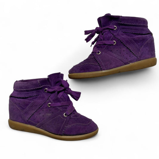 Isabel Marant Bobby Perferated Purple Suede Wedge Heel Trainers