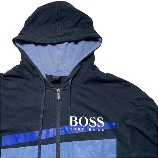 Hugo Boss Navy Blue and White Hoodie (M)