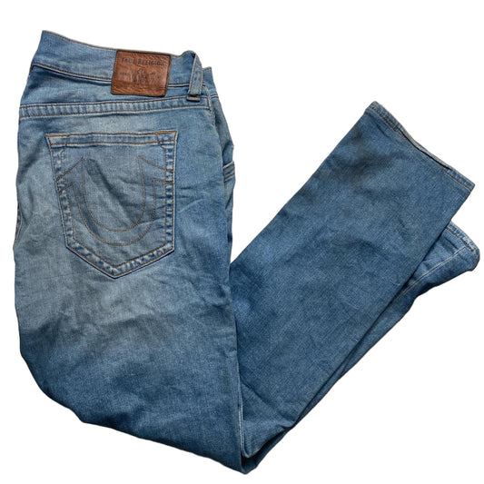 True Religion Geno Blue Stonewash Brown Stitch Jeans (36W)