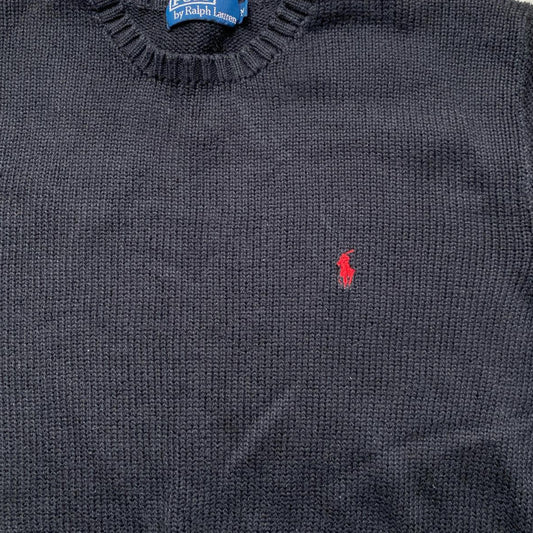 Polo Ralph Lauren Black and Red Knit Jumper (M)