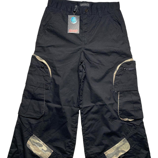 Criminal Damge Black and Camouflage Big Pocket Cargo Parachute Combat Trousers (32W)