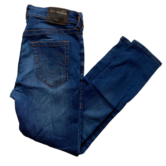 True Religion Jack Slim Blue and Gold Stitch Jeans (33W)