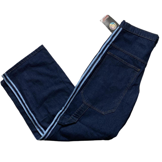 Criminal Damage Baggy Skater Carpenter Navy and Baby Blue Stripe Jeans (32W)