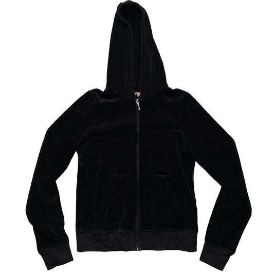 Juicy Couture Black and Pink Diamante Velour Hoodie (M)