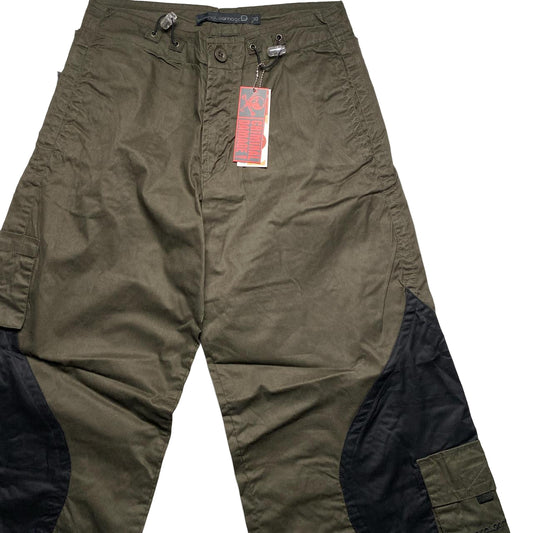 Criminal Damage Khaki Green and Black Baggy Cargo Parachute Combat Trousers (30W)
