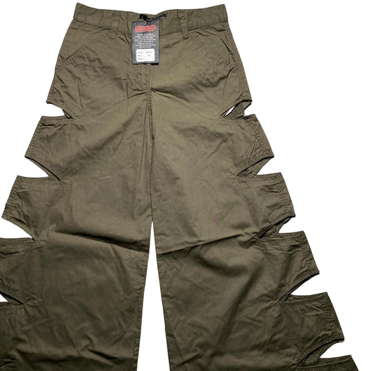 Criminal Damage Rib Cut Baggy Parachute Combat Slit Cargo Trousers Khaki Green and Orange (26W)
