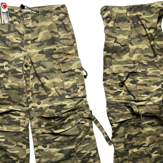 Criminal Damage Light Green Khaki Camouflage Cargo Baggy Vintage y2k Combat Trousers (30/32W)