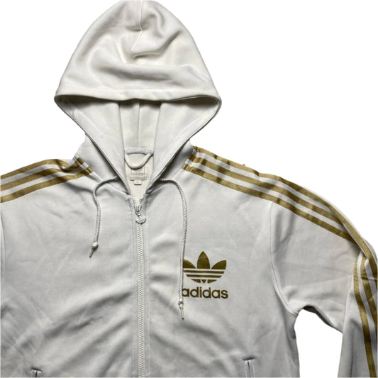 Adidas Originals White and Gold Hooded Tracksuit Jacket (M)