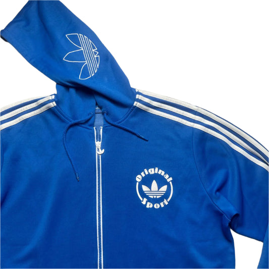 Adidas Blue and White Tracksuit Hoodie Jacket (L)