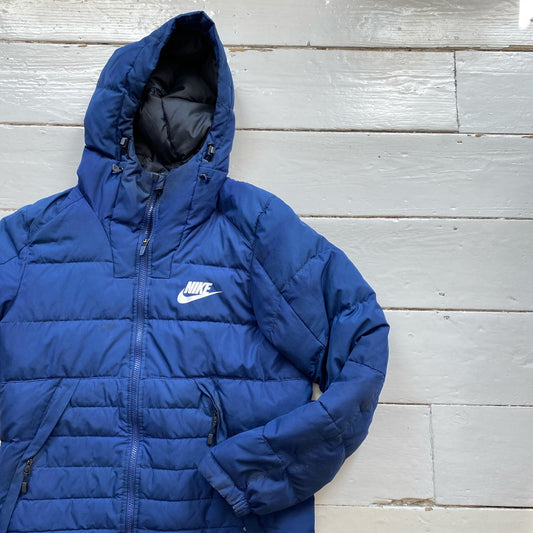 Nike Swoosh Navy and White Puffer Jacket (Medium)