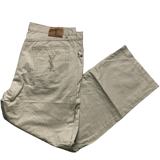YSL Yves Saint Laurent Embroidery Vintage Cream Jean Trousers (40W)