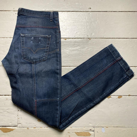 Versace VJC Vintage Dark Navy Red Stitch Baggy Jeans