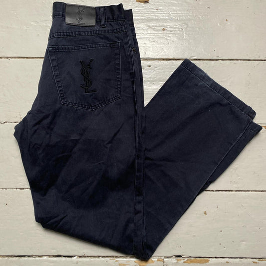 YSL Yves Saint Laurent Black on Black Embroidery Jean Trousers (30W)