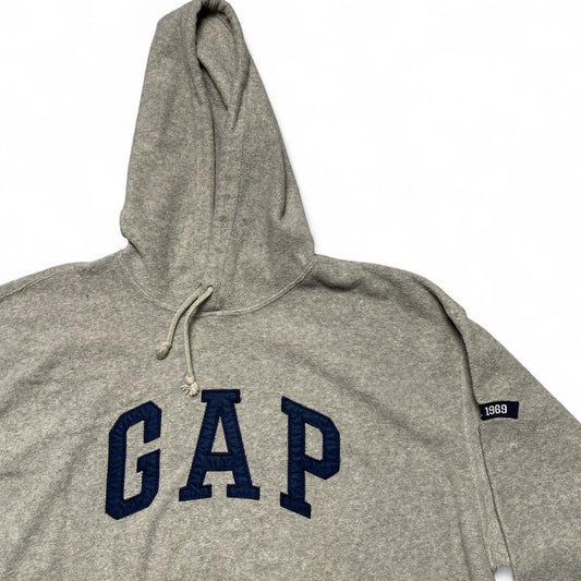GAP Grey Fleece Hoodie Navy Spellout (M)