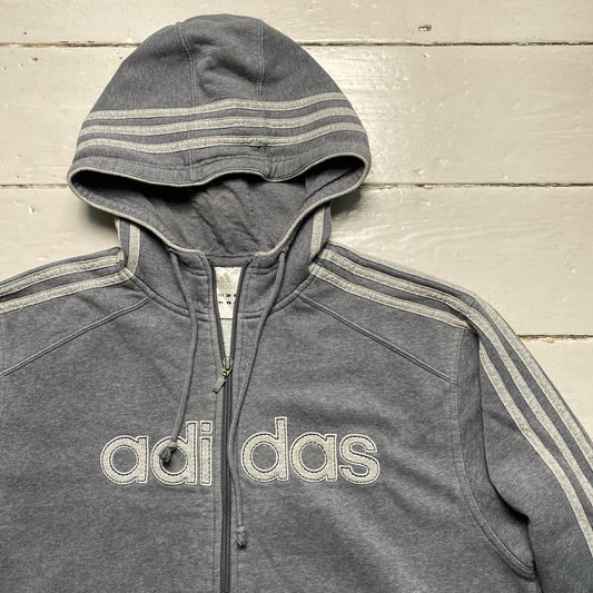 Adidas Grey Two Tone 3 Stripe Spellout Hoodie