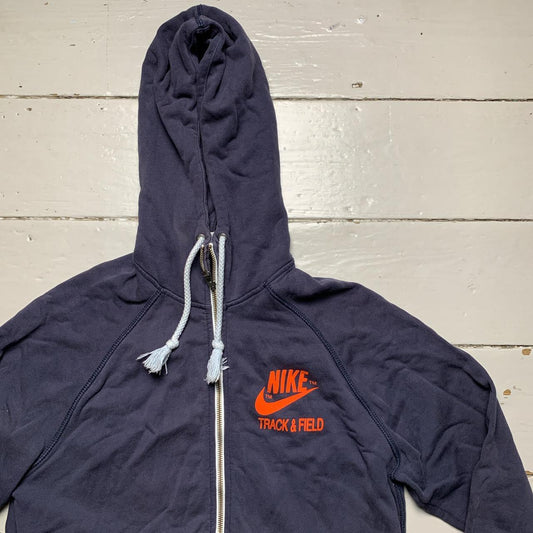 Nike Vintage Track and Field Navy and Orange Hoodie