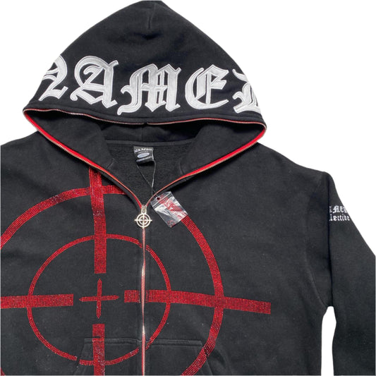 Named Collective Mission Target Diamante Rhinestone Black and Red Hoodie (M)