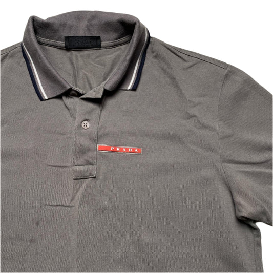 Prada Grey and Red Strip Polo Shirt (M)