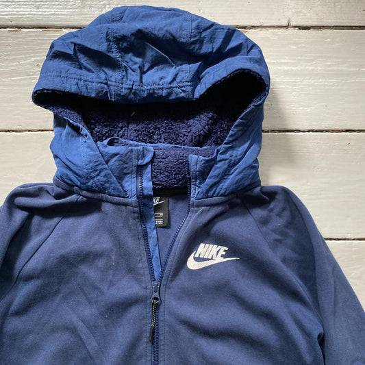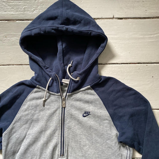 Nike Swoosh Navy and Grey Hoodie (Small)