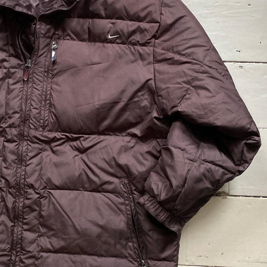 Nike Swoosh Brown Puffer Coat (Large)