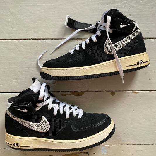 Nike Air Force 1 Black Mid Zebra (UK 8)