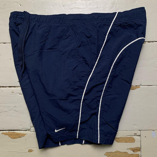 Nike Vintage Swoosh Baggy Track Pant Shell Shorts Navy and White