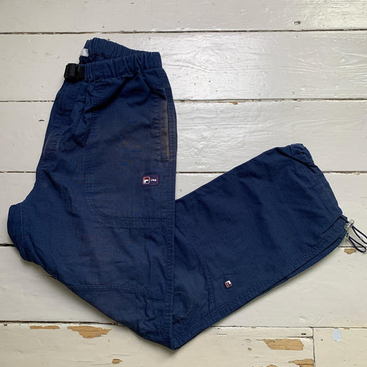 Fila Vintage Baggy Cargo Trousers Navy and White