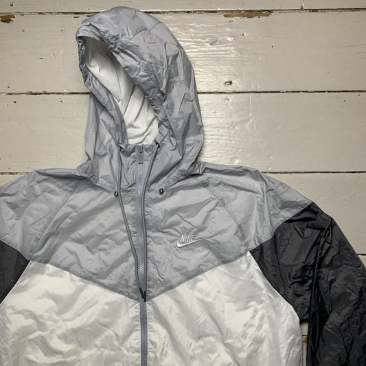 Nike Swoosh Shell Windbreaker Hooded Jacket Silver Grey and White