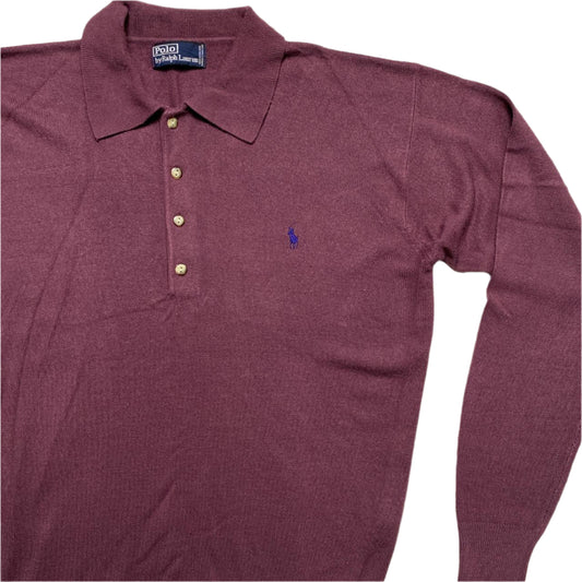 Ralph Lauren Polo Burgundy and Purple Pony Vintage Marino Wool Polo Shirt (XL)