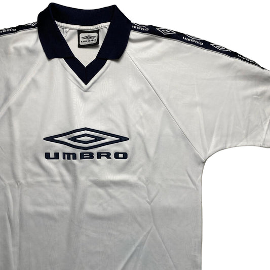 Umbro Vintage White and Navy 90’s Jersey Polo T Shirt (M)