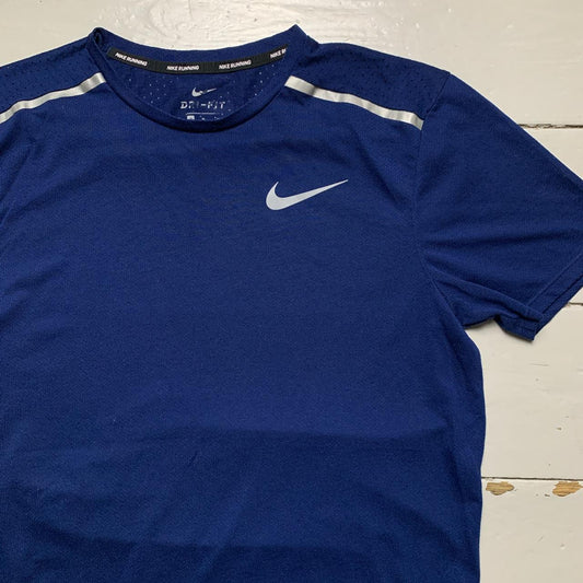Nike Miler Running T Shirt Navy and Silver