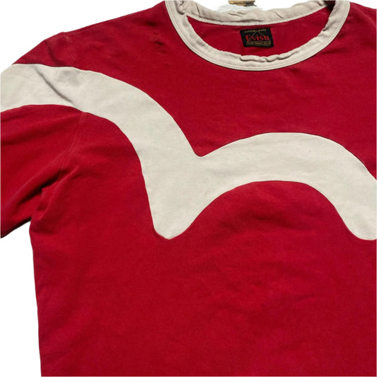 Evisu Red and Cream White Big Daicock Swoosh Sweatshirt Long Sleeve (M)