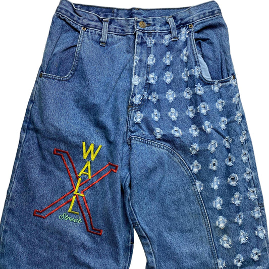 Wall Street X Vintage 90’s Baggy Distressed Embroidered Jeans (30W)