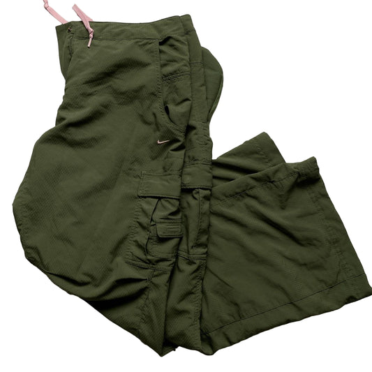 Nike Vintage Khaki Green and Pink Womens Cargo Baggy Combat Trousers (UK 12)