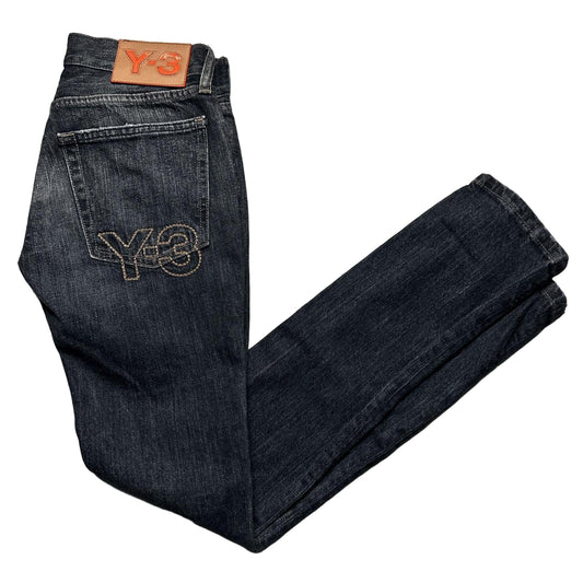 Y-3 Yohji Yamamoto Womens Grey Denim Jeans Brown Stitch (28W)