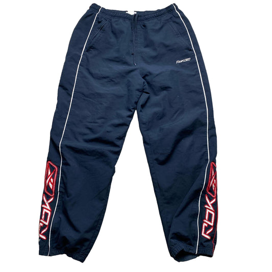 Reebok Vintage Navy White and Red Shell Baggy Trackpant Bottoms (M)