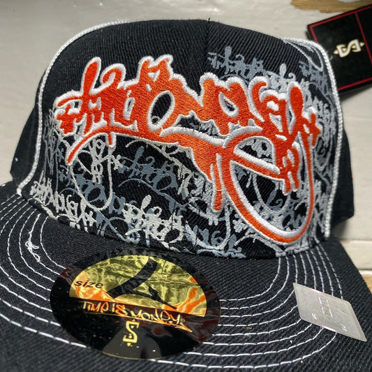 Time Is Money Graffiti Fitted Black Orange and White Cap