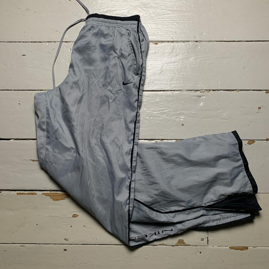 Nike Vintage Swoosh Leg Spellout Baggy Silver and Black Shell Track Pant Bottoms