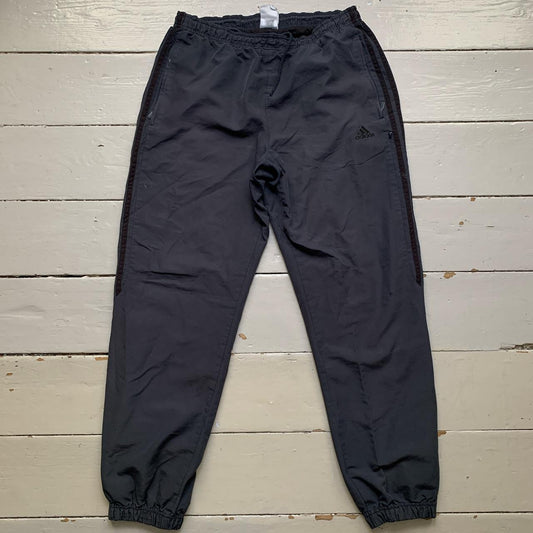 Adidas Grey and Black Baggy Shell Bottoms