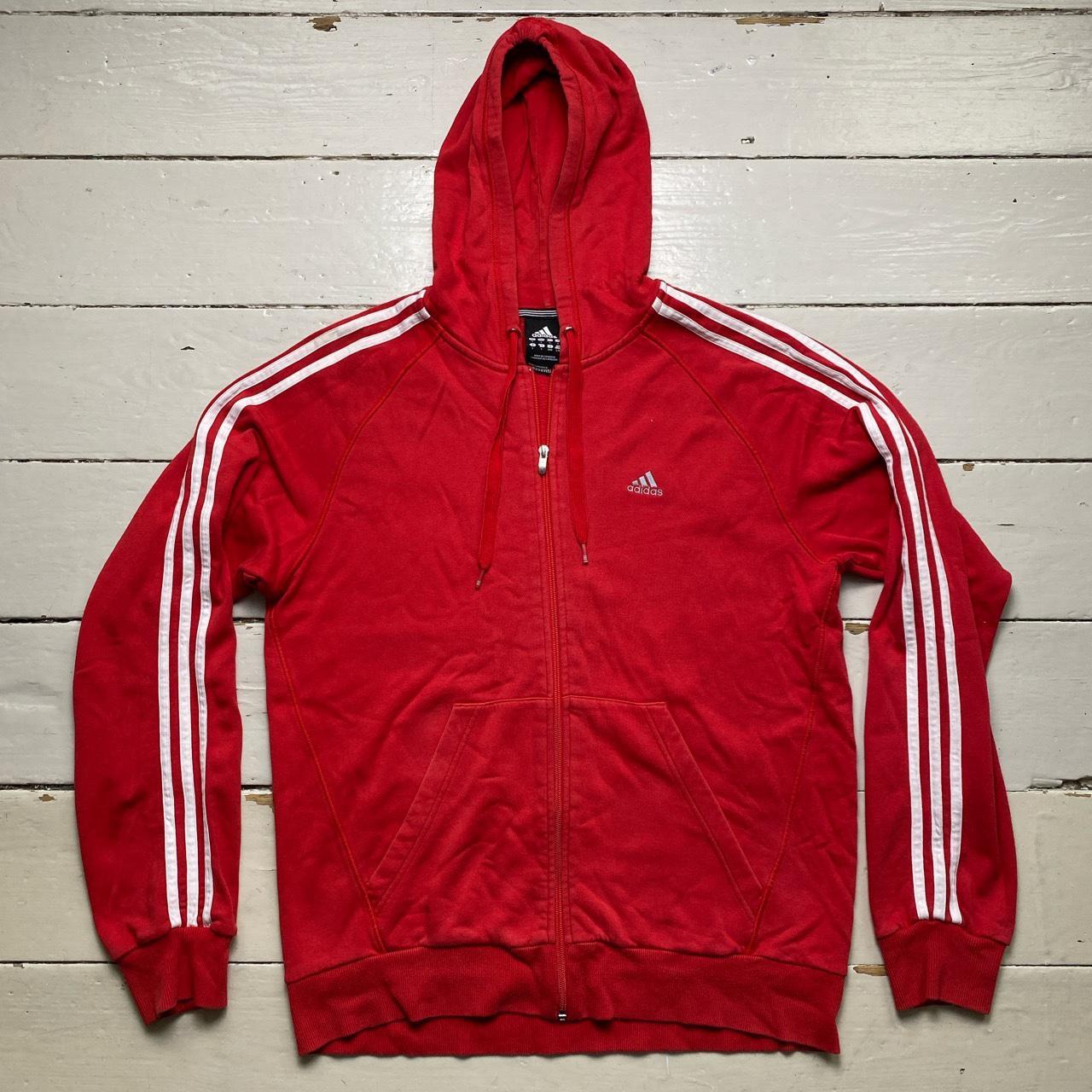 Adidas Performance Essentials Red and White Hoodie