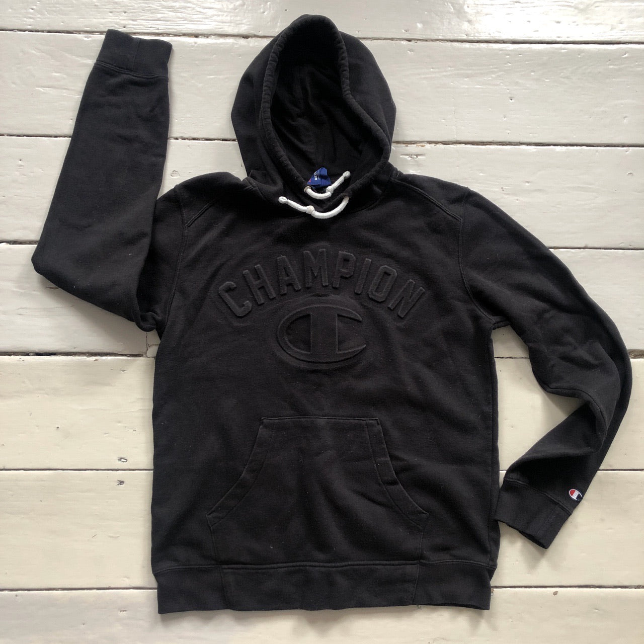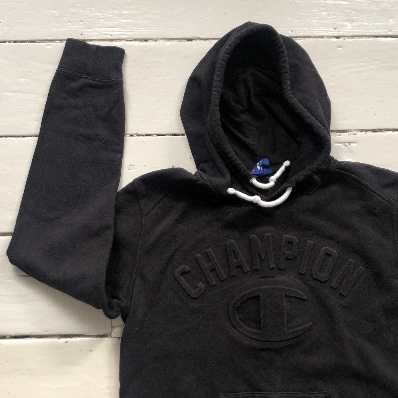 Champion Black Spellout Hoodie (Medium Womens)