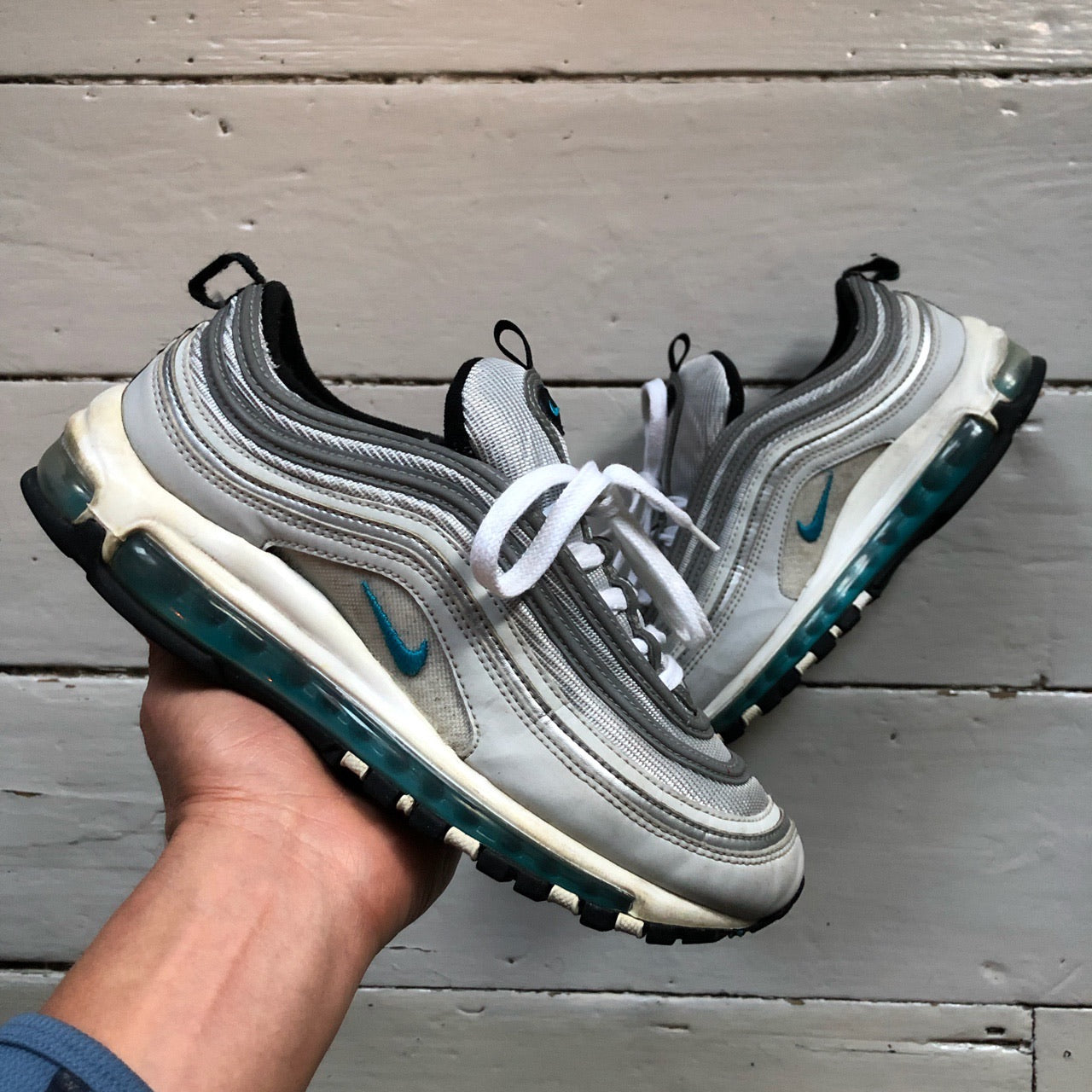 Nike Air Max 97 Silver and Blue (UK 6.5)