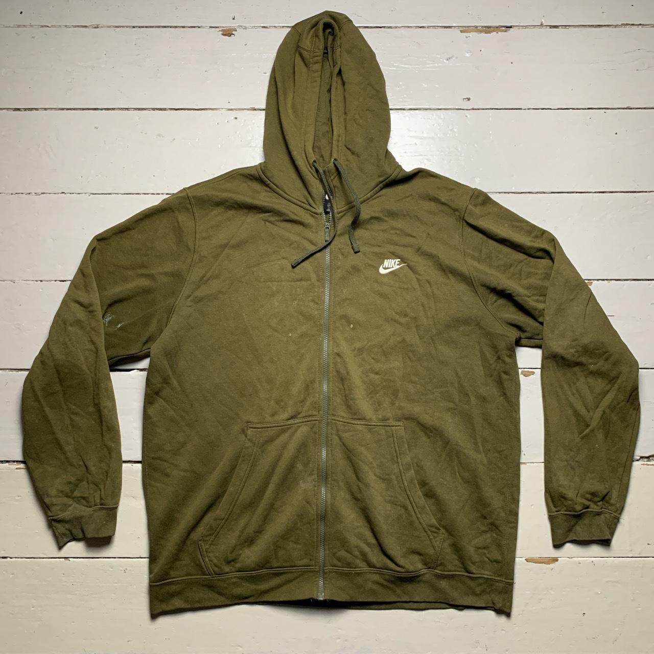 Nike Swoosh Hoodie Khaki Green and White